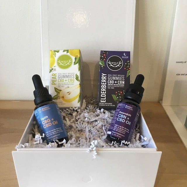 This CBD Uplift + Downshift Gift Box will help you prep for a great start to your day and then prep for a great night of sleep. This box would cost $156.80